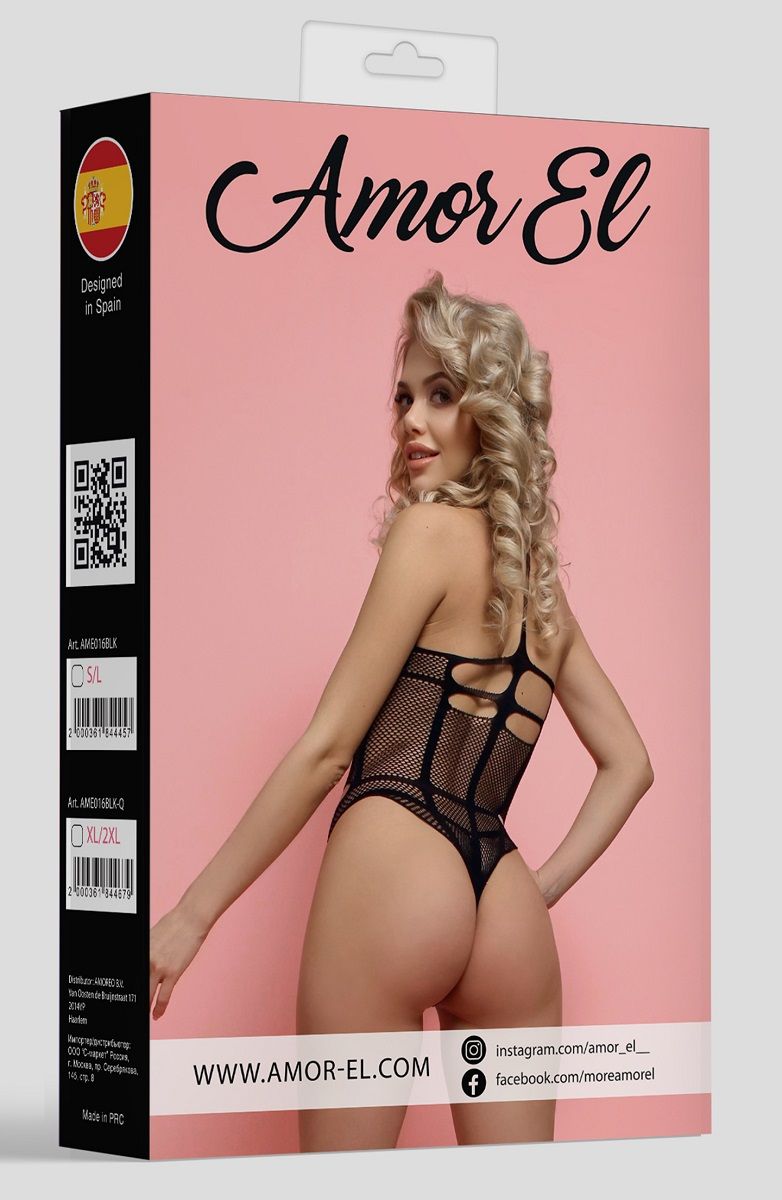 Сексуальное боди с симметричными вырезами и ажурным воротником. Дизайн выполнен в виде мелкой сетки, дополненной непрозрачными полосами и округлыми вырезами, подчеркивающими изгибы тела. Благодаря использованию большего количества нейлона, белье сохраняет очертания, не деформируется, растягивается и выгодно облегает фигуру.