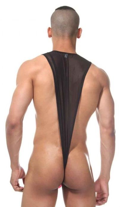 Оригинальное боди для мужчин, в котором скомбинирована верхняя полупрозрачная с контрастным гульфиком.