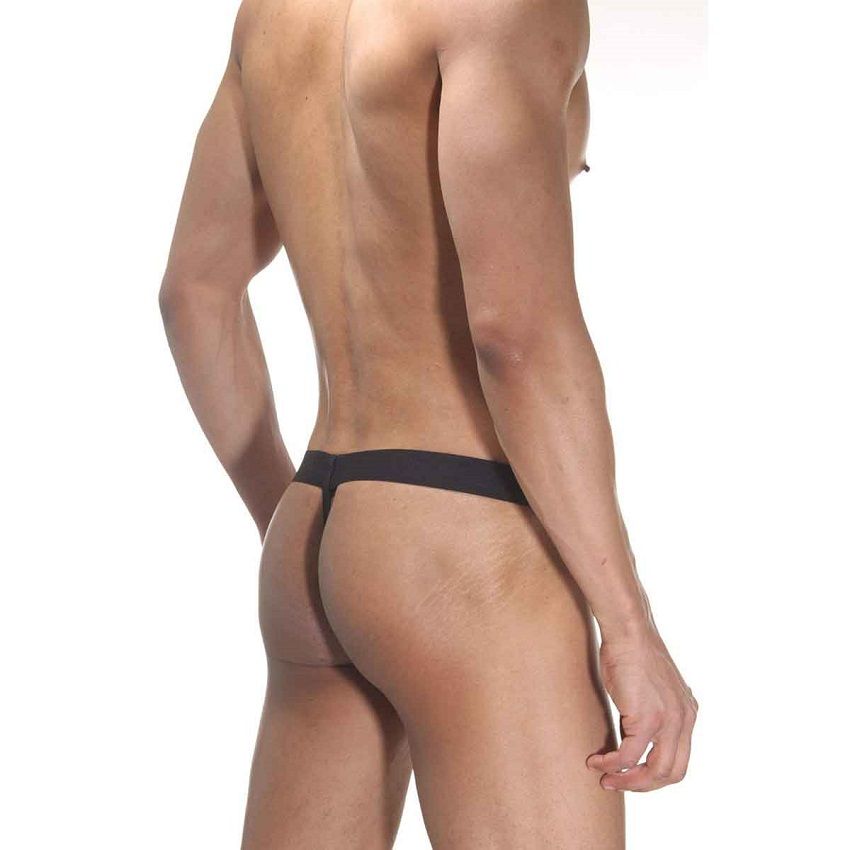 Трусы-стринги для мужчин на широкой черной резинке на поясе. Спереди трусы из леопардовой тонкой гладкой ткани.