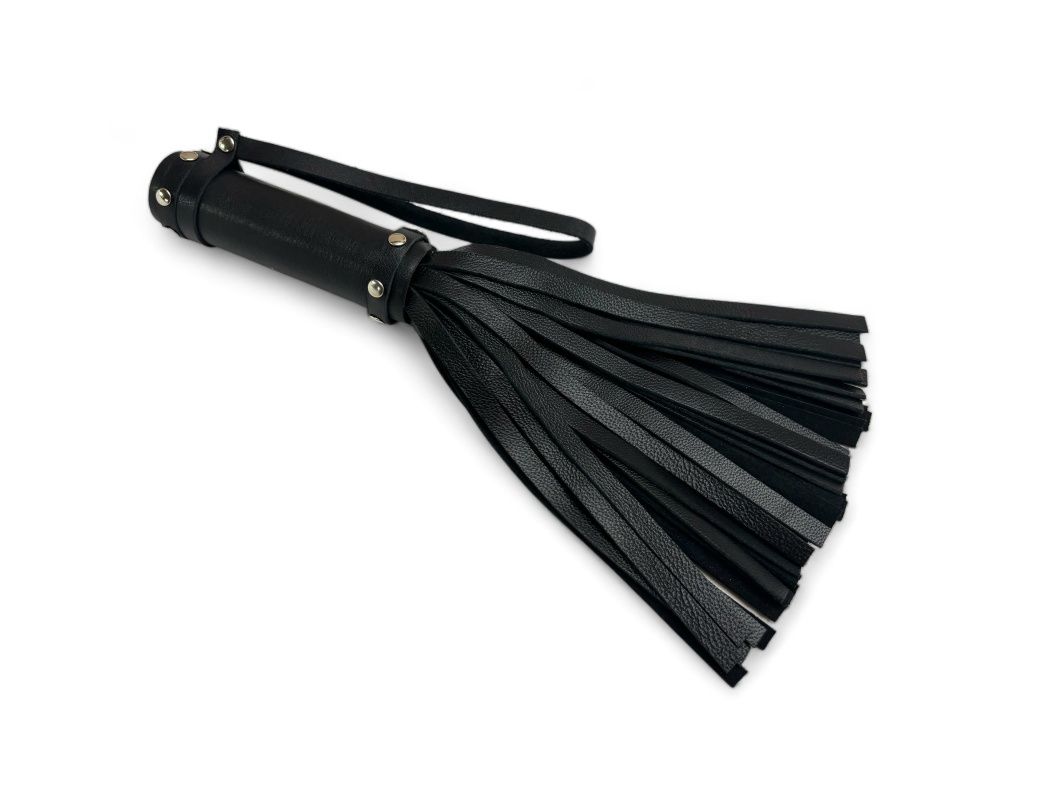 Плеть генитальная мини Queen Arsenal - изящная малышка, которая создана, чтобы доставлять волнующие незабываемые ощущения. Изделие выполнено из натуральной кожи, декорировано качественной металлической фурнитурой. Хвосты выполнены из нежнейшей овечьей кожи, невероятно мягкие и приятные, количество 37 штук. Для удобства на рукоятке имеется петелька. Идеальный аксессуар для игривого настроения! Длина хвостов - 16 см.