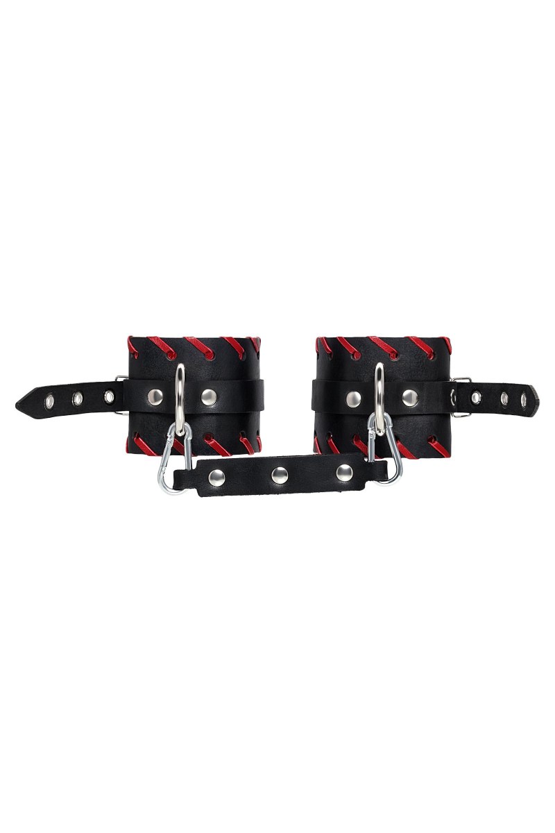 Готовы играть по-взрослому? Не бойтесь своих желаний! Основатели бренда уверены: лучший способ избавиться от искушения - поддаться ему! Добавьте пикантную деталь в ролевую игру и воплотите самую смелую сексуальную фантазию в реальность! Двухслойные кожаные оковы с окантовкой красного цвета, могут стать стильным аксессуаром на «свободных» руках, но могут послужить вашим целям и фантазиям по своему прямому назначению. Наличие двух карабинов и колец позволяет использовать изделие как раздельно – аксессуар-манжеты, так и как наручники для фиксации. К широким металлическим кольцам также можно присоединить и другие аксессуары при помощи карабинов. Благодаря универсальному размеру наручники могут использоваться и мужчинами, и женщинами. Размер легко регулируется с помощью металлических пряжек, органично вписывающихся в общий стиль. Длина манжет - 25 см, ширина манжет - 6,5 см. Длина сцепки - 20 см.