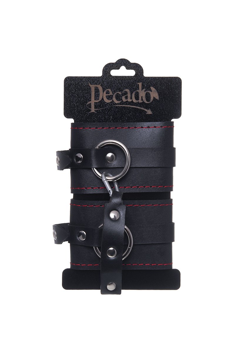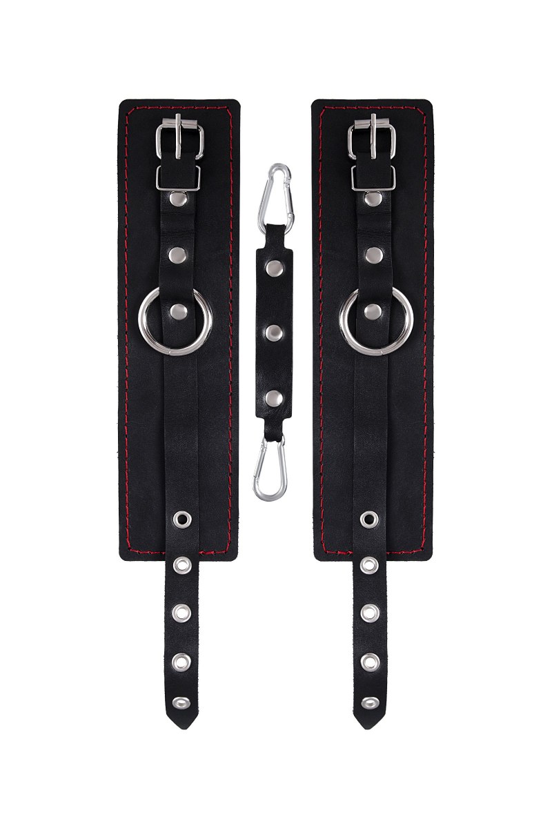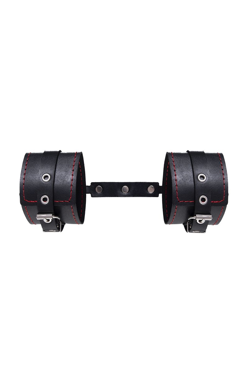 Эти однослойные кожаные оковы с контрастной строчкой красного цвета могут стать стильным аксессуаром, а могут послужить вашим целям по своему прямому назначению. Частичное обездвиживание и невозможность двигать руками или ногами дают вам полную власть над партнером – взрослые игры для взрослых. Наличие двух колец и карабинов, соединенных между собой кожаным ремешком, позволяет использовать изделие как раздельно – аксессуар-манжеты, так и как оковы для фиксации. К широким металлическим кольцам также можно присоединить и другие аксессуары при помощи карабинов. Благодаря универсальному размеру оковы могут использоваться и мужчинами, и женщинами. Размер легко регулируется с помощью металлических пряжек, органично вписывающихся в общий стиль. Длина манжет - 25 см, ширина - 6,5 см. Длина сцепки - 17 см.