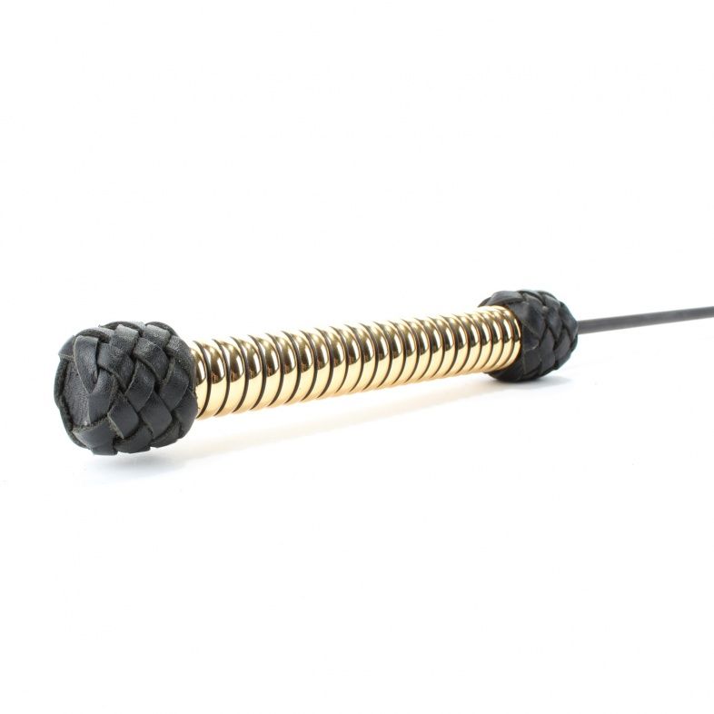 Чёрный королевский стек с золотистой рукоятью. Выполнен из кожи. Длина рукояти - 21 см.