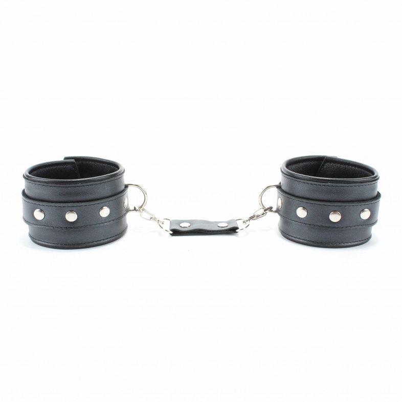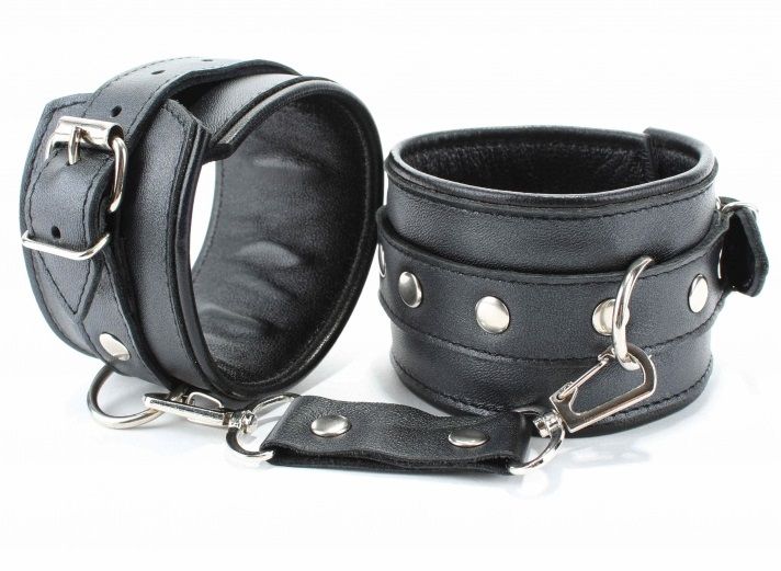 Оживить эротические игры Вам помогут поножи. Этот интимный аксессуар пользуется успехом у мужчин. Выполненные в черном цвете и украшены прочными ремешками. Модный интимный аксессуар не сдавливает и не нарушает кровообращение, так как изготовлен из мягкой кожи. Чтобы любимая никуда не убежала, поножи соединены короткой перемычкой. Длина манжет - 29,5 см., ширина - 5,7 см. Длина перемычки - 6 см.