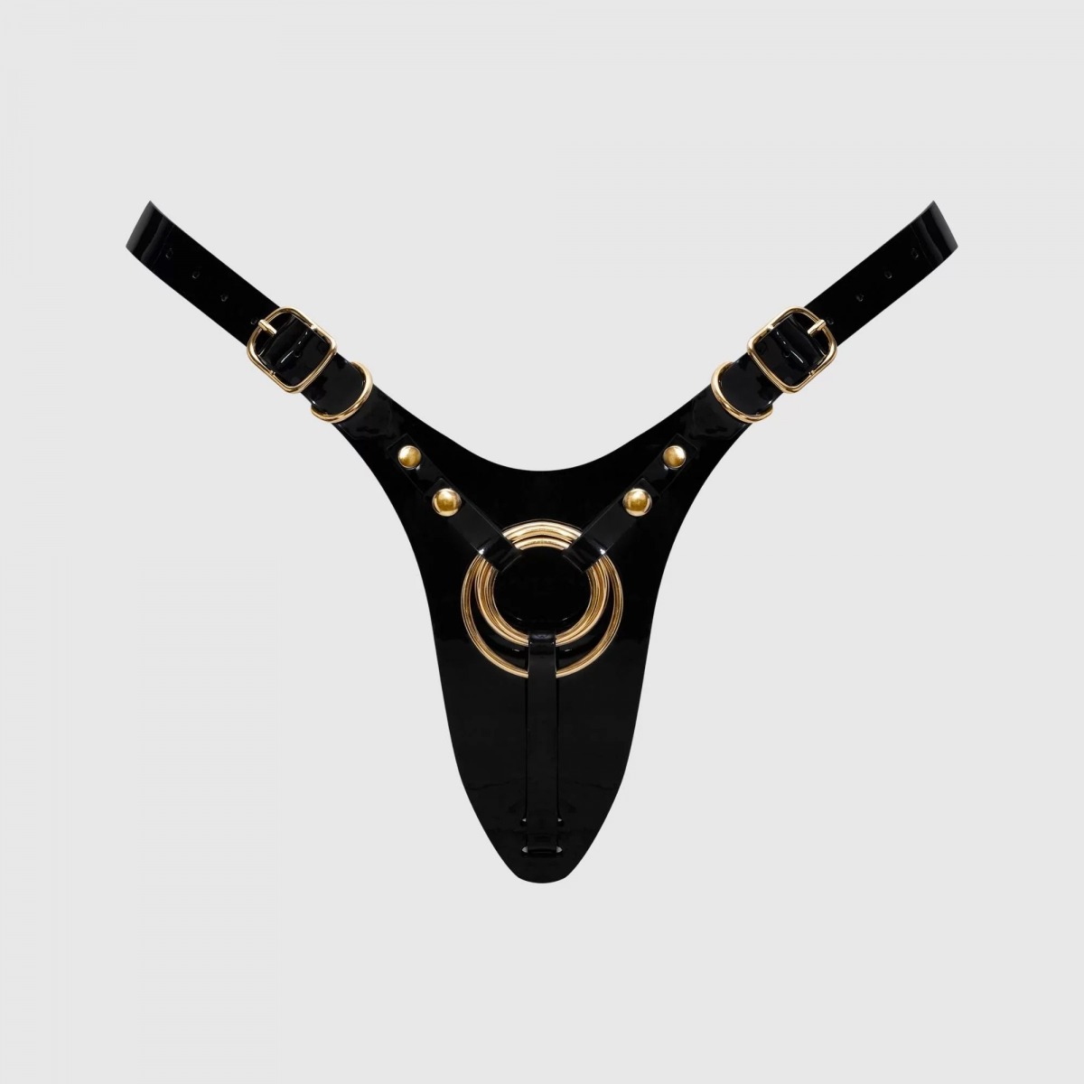 Роскошный пояс для страпона Fabulous бросает вызов условностям, переосмысливая классические стринги через призму бескомпромиссного гламура. Каждая деталь тщательно продумана: минималистичная спинка-стринги деликатно подчеркивает линию ягодиц, а глянцевое лаковое покрытие придает люксовый вид. Регулируемые лямки обеспечивают идеальную посадку и полную свободу движений. Три сменных металлических кольца гарантируют надежное крепление фаллоимитаторов разного размера. Диаметр колец - 3,5, 4 и 5 см.